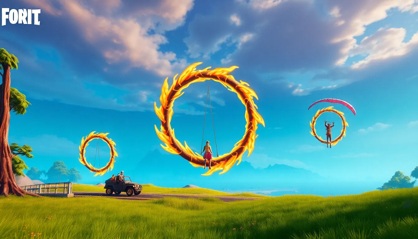 Exciting gameplay mechanics this season include the ability to perform stunts and tricks while soaring through the fire hoops. Various locations, such as popular POIs, host these hoops, encouraging exploration and creativity. Additionally, players appreciate how fire hoops challenge traditional gameplay, pushing them to develop their skills.