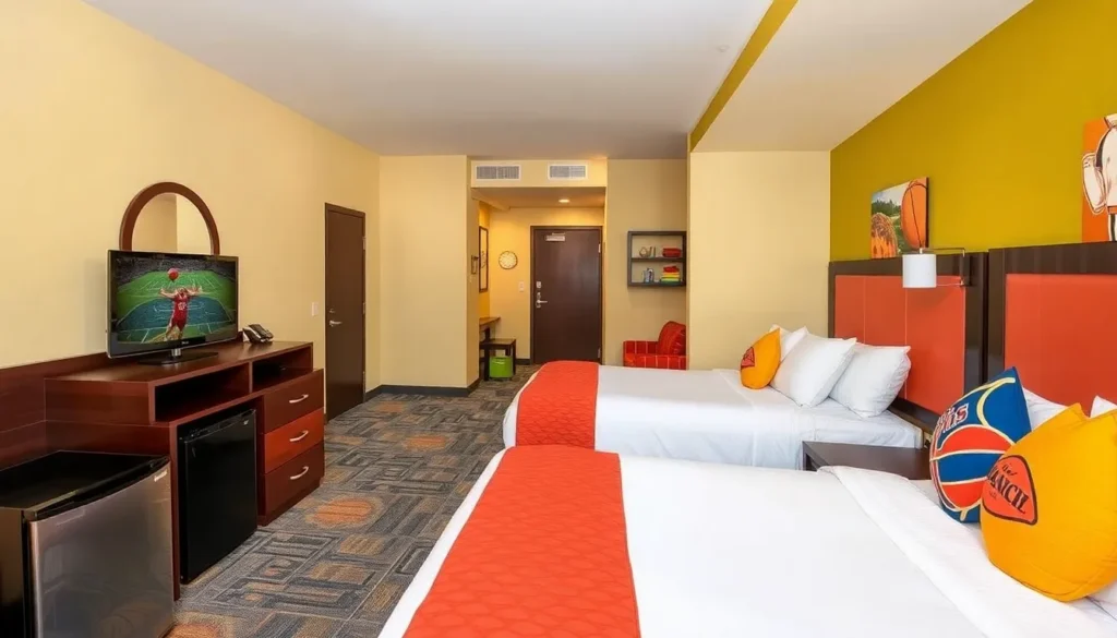 ToggleNestled in the heart of the action, Hoops Hotel at All-Star Sports is a slam dunk for sports enthusiasts and families alike. Imagine a place where every hallway echoes with the thrill of competition and every room feels like a VIP locker room. This isn’t just a hotel; it’s a playground for those who live and breathe sports.