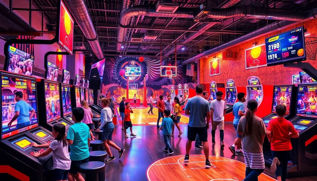 Interactive experiences invite players to fully engage with activities. Players shoot basketballs at targeted areas, aiming for high scores while interacting with friends and family. This setup encourages teamwork and competition in a lively environment. Game stations accommodate multiple participants, allowing everyone to join in the fun. Laughter and excitement fill the space, creating memorable moments. Engaging with others boosts social interaction, making each visit enjoyable and unique.