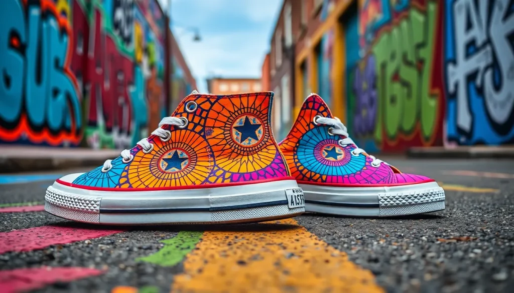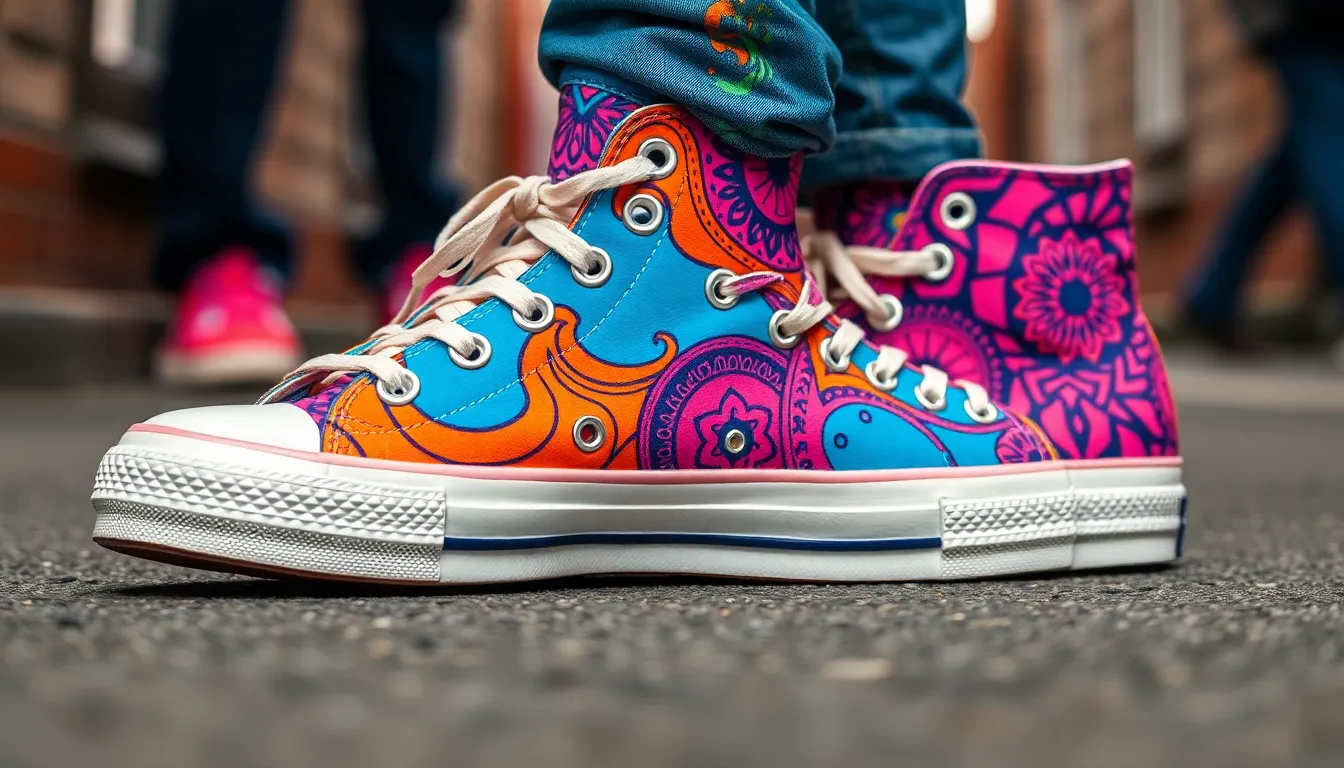 The influential patterns on the sneakers contribute to their distinctive identity. Intricate geometric designs capture the essence of psychedelic art, creating a playful visual experience. Swirls, dots, and lines intertwine, delivering a dynamic aesthetic. These stylish patterns attract not only sneaker lovers but also art enthusiasts. Timeless yet modern, their patterns resonate with both contemporary and retro styles, making them versatile. As a result, they serve as perfect conversation starters, showcasing individual flair while keeping the spirit of classic Chuck Taylors alive.