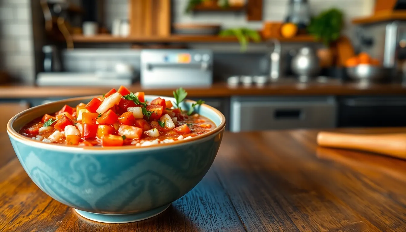 High-powered commercial blenders ($400-800) represent the primary equipment investment for rizopacho preparation, ensuring the soup achieves its signature silky texture. Refrigerated prep tables ($1,200-2,500) provide dedicated space for assembling the cold components while maintaining food safety standards. Vacuum sealers ($300-700) extend ingredient shelf life and enhance flavor infusion, reducing waste and improving consistency. Temperature-controlled storage containers ($10-30 each) preserve the prepared rizopacho at optimal serving temperature. Digital portion scales ($50-150) enable precise ingredient measurements, maintaining consistent food costs across every serving. Most restaurants already possess these equipment items, meaning the incremental cost for specialized rizopacho production is minimal compared to the premium pricing potential.